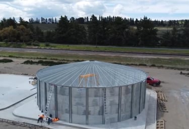 Ofrecemos silos de acero galvanizado y zinc-aluminio para conservar agua.