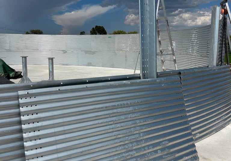 Ofrecemos silos de acero galvanizado y zinc-aluminio para conservar agua eficientemente.